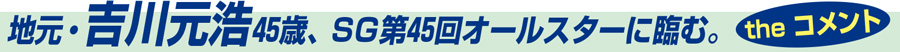 魚谷 ファンの方に選んでいただかないと走れないSGなので、レースの結果で応えたいと、ほとんどの選手が思っていると思います。僕もそういう思いで臨んでいます。