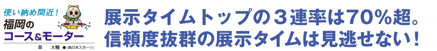展示タイムトップの舟券貢献度の高さはいまさら言うまでもないが、近況はその信頼度がさらに増している。今年に入ってから、展示タイムトップの3連率が70%を超えるシリーズが“普通”になってきているだけに、舟券作戦を考えるうえで絶対に欠かせない。