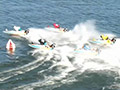 1マークを先制した中野が他艇を完全にシャットアウト! 中野はまくらせず差させずのターンで先頭に立つと、直線でジワジワと差を広げていきます。次コーナーも先にクリアした中野が、独走スタイルを確保。そのまま守り切って1着でゴールラインを通過します。1周2マークで抜け出した芝田が2着入線。須藤と真庭による3着争いは、3周2マークで真庭を振り切った須藤に軍配が上がっています。
