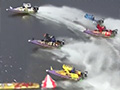 トップスタートを決めた濱野谷が内へと締めにかかりますが、1マークまでに伸び返した吉川が先制します。吉川はバックストレッチで一歩前に出ると、続く2マークも真っ先にクリア。そのままリードを守り切った吉川が1着でゴールし、幸先のよい滑り出しを見せています。笠原と太田による2着争いは、2周2マークで太田がターンマークに接触し、後退。その間に抜け出した笠原が2着を取り切っています。