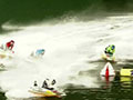 桐生が1周1マークを先取りにいくところに、徳増が思い切ったまくり攻勢に出ます。これを桐生がガッチリ受け止めると、その間にブイ際から割って入った桑原が2番手に浮上。バックストレッチは桐生がスルスルと艇を伸ばして先頭をキープします。2マークを回って安全圏を確保した桐生は、最後まで手綱を緩めず航走。桐生が人気に応える逃走劇で2日目ドリーム戦を制しています。桑原が2着、徳増が3着に入線。