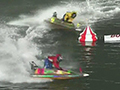 柳沢が先マイにいきますが、振り込んでアクシデント。事故艇を避けるようにもつれた展開から、白井、田村、池田が抜け出していきます。1周2マークをコース優位に先制した田村は、ここで先頭に立つと落ち着いて周回を重ねてゴールイン。田村が初戦で白星を手にして、2nd進出に大きく前進しています。2着に池田、3着に白井が入線。なお、1号艇の柳沢が妨害失格、4号艇の太田が落水失格、6号艇の茅原がエンスト失格となっています。