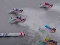 新田がトップタイのスタートから1マークを先マイ。船岡が差しを狙うも及ばず、新田がバックストレッチでリードを広げます。新田は続くブイも真っ先に旋回すると、独走態勢に突入し1着でゴールイン。イン戦をきっちりモノにした新田がシリーズ初勝利を手にしています。1周2マークでやや抜け出した船岡が守り切り次位入線。平本が2周2マークを巧みにさばいて3着となっています。