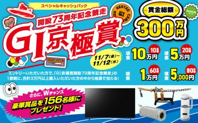 G1京極賞開設73周年記念競走、総額300万円キャッシュバック&TVなど人気家電や特産品が当たる!