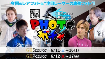 第9回ウエスタンヤング(6/11~6/16、福岡)、第9回イースタンヤング(6/12~6/17、津)の2つのレースを通じてヤングレーサーを盛り上げるべく、出場レーサーたちのオリジナルフォトが手に入る期間限定サービスを節間公開します。