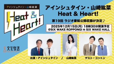 【観覧募集中♪】ゲストはお笑い芸人・コットン「アインシュタイン・山崎紘菜 Heat&Heart!」公開収録