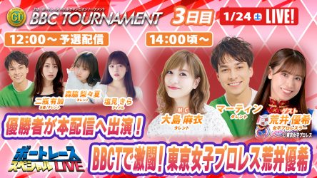 豪華ゲストが出演!「プレミアムG1 BBCトーナメント」がYouTubeで毎日楽しめる!さらに、視聴者プレゼントも!!