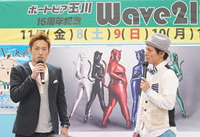 ボートレース浜名湖では11月8日(土)、「ボートピア玉川16周年記念WAVE21杯」競走2日目、『篠崎仁志選手(福岡)トークショー』を実施しました。