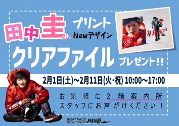 田中圭さんNEWデザインクリアファイル2枚一組をプレゼント