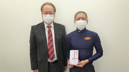 レース後には、競技棟において、越前三国競艇企業団 髙山事業局長より金一封が贈られました。