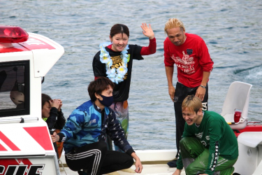 レース後にはファンの皆様の前で歓喜の水神祭が行われました。