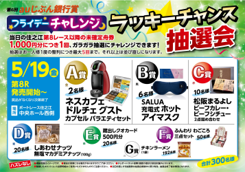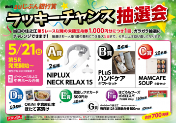 当日のボートレース住之江第5レース以降の未確定舟券1,000円分につき1回ご参加いただける抽選会を実施します。