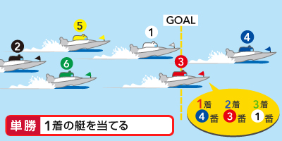 ボートレースは6艇で走るレースのため、単勝式の舟券は6通りということになる。 的中率は1/6。
