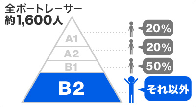 A1、A2、B1以外のレーサーがこのクラス。技量がまだ高くない新人レーサーや、ケガなどの事情で出走回数が少ないレーサー。