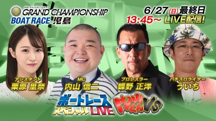 超豪華ゲストを迎えて児島SGグランドチャンピオンを初日から最終日までYouTubeライブで無料ネット配信。ボートレーススペシャルLIVE!