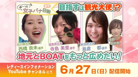 3人の女子レーサーが思わずハイテンションになってしまう今回のテーマは、「レース場がないところで生まれてもボートレーサーになれる!!」。