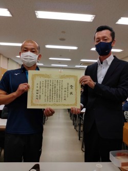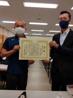表彰は、日本モーターボート競走会東海支局の野村真人理事より行われ、表彰状が河合選手に手渡されました(別途、賞品と記念盾を後日選手へ送付)。
