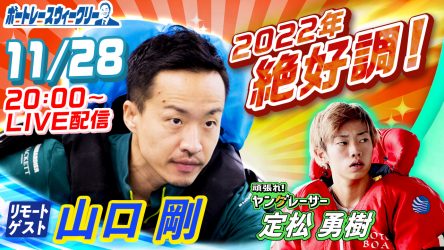 11月28日(月)は20時から「ボートレースウィークリー」をLIVE配信!今回はチャレンジカップでも活躍中の山口 剛選手がリモート出演!さらに、がんばれ!ヤングレーサーのコーナーでは9月に初優勝を果たした定松勇樹選手を紹介! YouTube とBOATCASTで配信です!