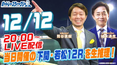 熊谷直樹さんがリモート出演!12月12日(月)20時から「ボートレースウィークリー」をLIVE配信!植木通彦ボートレースアンバサダーと当日開催のナイターレース12Rを生推理!YouTubeとBOATCASTで配信!