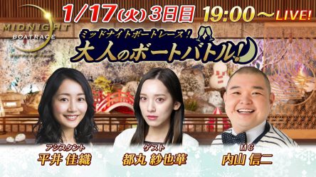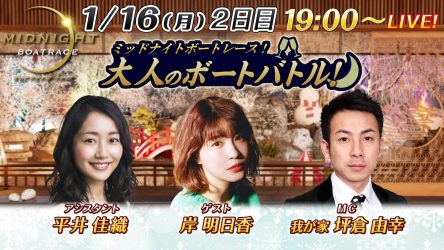 ミッドナイトボートレース第5戦がボートレース大村(1/15~19)で開催!豪華MC・ゲストを迎えてYouTubeライブを配信!「ミッドナイトボートレース!大人のボートバトル!」