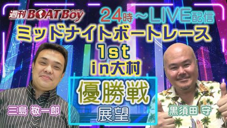 BOATBoy黒須田編集長とボートレースの話をしよう!明日4/29(土)24時からLIVE配信! BOATCAST・YouTube JLC公式CHで配信「週刊BOATBoy」最新情報をお届け! 「ミッドナイトボートレース1st in大村 優勝戦展望」 皆さんの予想も教えて下さい!チャットでのご参加お待ちしております。