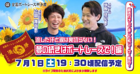 〜流した汗と涙は裏切らない!夢の続きはボートレースで!編〜」をBOATCASTとBOATRACE公式YouTubeで生配信!