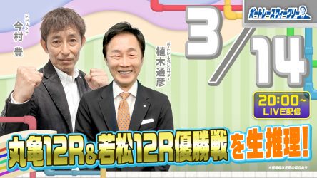3月14日(木)20時から「ボートレースウィークリー」をLIVE配信!レジェンド今村豊さんがリモート出演!植木通彦ボートレースアンバサダーと【丸亀12R&若松12R優勝戦】を生推理!YouTubeとBOATCASTで配信です!
