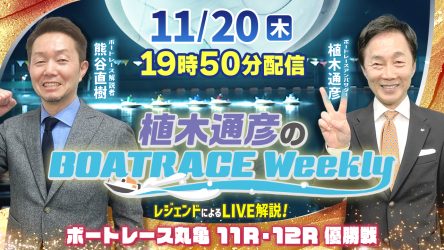 熊谷直樹さんがリモート出演!「植木通彦のボートレースウィークリー」は11月20日(木)19時50分から【ボートレース丸亀 11R・12R優勝戦】をLIVE解説!