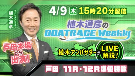 植木通彦アンバサダーが戸田から生出演!4月9日(木)15時20分から配信「植木通彦のボートレースウィークリー」!【戸田 11R・12R準優勝戦】を解説します!
