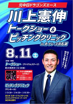 また8月11日(土)には元中日ドラゴンズの川上憲伸氏を招いてのトークショー&ピッチングクリニックの実施。8月12日(日)には元サッカー日本代表の北澤豪氏を招いてのトークショー&サッカーレッスンの実施も行います。