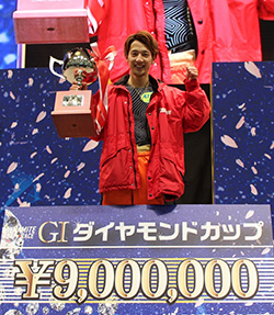 平成31年4月9日(火)、ボートレース下関「G1ダイヤモンドカップ」(4月4日~4月9日開催)において、登録第4719号上條暢嵩選手(大阪)が、G1初優勝を飾りました。