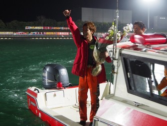 表彰式ではたくさんのファンに囲まれ大声援の中、笑顔でインタビューに応じている姿が印象的でした。G1初優勝にあたって、「下関のファンの皆様は温かくG1初優勝を祝福してくれて嬉しいです。」とコメントをいただきました。