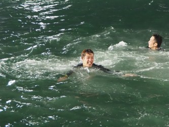 表彰式後のピットでは上條選手のG1初優勝を祝福するため、たくさんの選手が見守る中、水神祭が行われました。