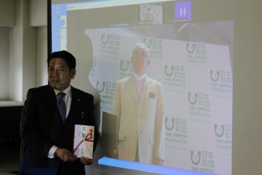 4月21日に大村市園田裕史市長から日本財団笹川陽平会長にテレビ電話により目録を贈呈。