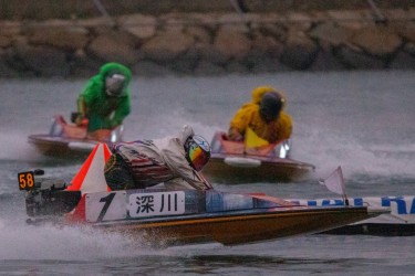 夕方から急激に天候が悪化。例を見ない暗い水面で行われた優勝戦。