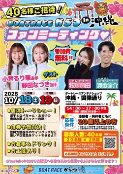 ボートレース唐津では、ボートレースアンテナショップ沖縄・国際通りにて10月18日(土)、10月19日(日)の2日間に渡りファンミーティングを開催します。