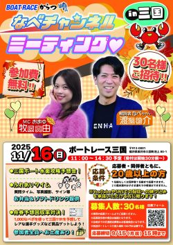 ボートレースからつでは、11月16日(日)にボートレース三国にて、なべチャンネルミーティングを開催します!