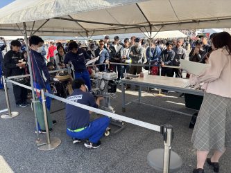 ボートレース児島では出展イベントとして、ボートに乗って記念撮影できる「なりきりボートレーサー」、整備士による「モーター解体ショー」及び全国の特産品が購入できる「ボートレースマルシェ」を実施しました。